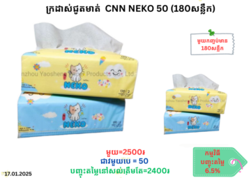 ក្រដាស់ជូតមាត់ CNN NEKO 50 (180សន្លឹក)