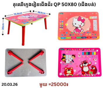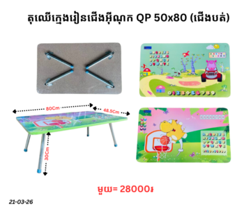 តុឈើក្មេងរៀនជើងជ័រ QP 50×80 (ជើងបត់)