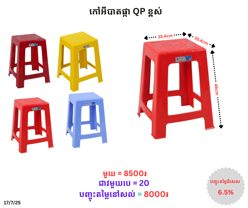 កៅអីបាតផ្កា QP ខ្ពស់ January 3, 2026 Posted in 8000, QP, កៅអី, កៅអីខ្ពស់, កៅអីខ្ពស់ QP Product Code : P0008086