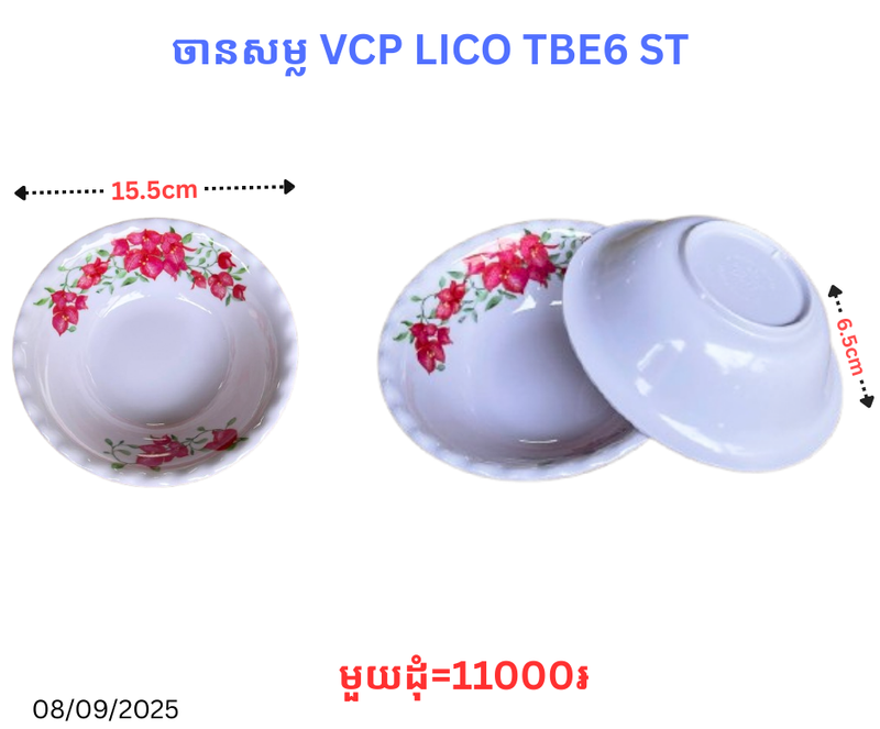 ចានសម្ល VCP LICO TBE6 ST December 6, 2025 Posted in 11000, ST, TL, ចាន, ចានប៉ក់ស៊ីឡែន, ចានសម្ល, ចានសម្ល TL តម្លៃ: 11000 ៛Barcode: P0008468 | Factory: Factory Code : TBE6