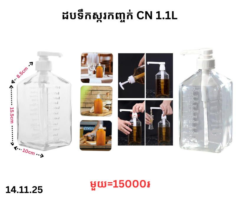 ដបទឹកស្ករកញ្ចក់ CN 1.1L November 15, 2025 Posted in 15000, CN, ដបទឹកស្ករ, ដបទឹកស្ករកញ្ចក់ CN, ទំនិញថ្មី