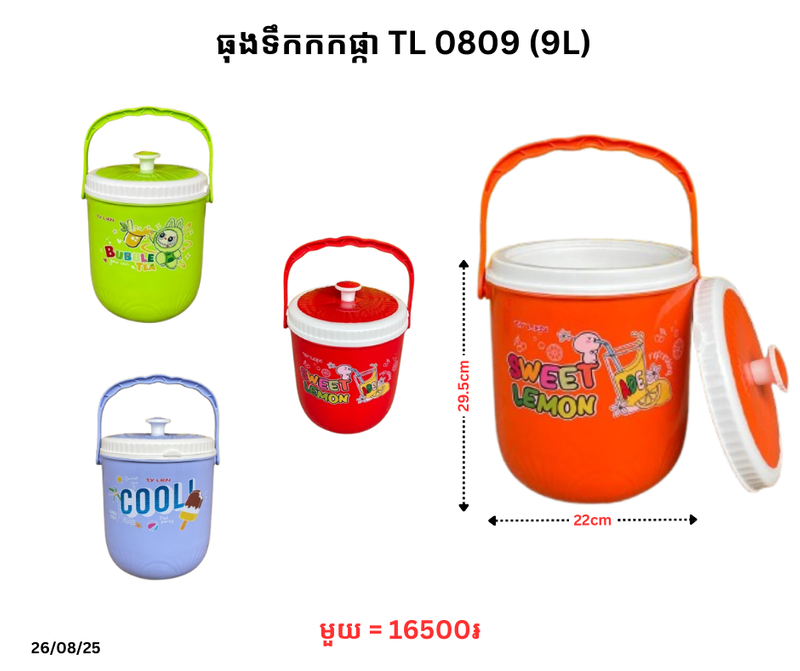 ធុងទឹកកកផ្កា TL 0809 (9L) December 19, 2025 Posted in 16500, TL, ធុងទឹកកក, ធុងទឹកកកផ្កា, ធុងទឹកកកផ្កា TL, ធុងទឹកកកមូល Barcode : 8936082381190