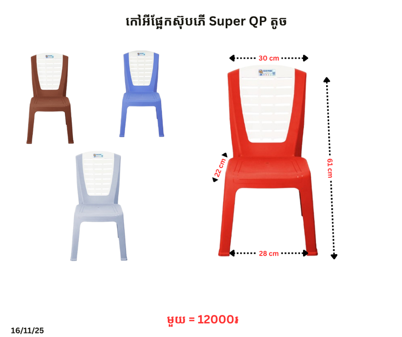 កៅអីផ្អែកស៊ុបភើ Super QP តូច January 3, 2026 Posted in 12000, QP, កៅអី, កៅអីផ្អែកតូច, កៅអីផ្អែកតូច QP, ទំនិញថ្មី