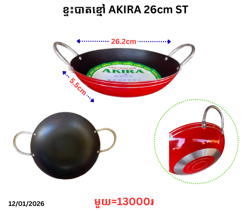 ខ្ទះបាតខ្មៅ AKIRA 26cm ST November 24, 2025 Posted in 13000, CN, ST, ខ្ទះ, ខ្ទះឆា, ខ្ទះបាតខ្មៅ, ខ្ទះបាតខ្មៅ AKIRA, ទំនិញថ្មី