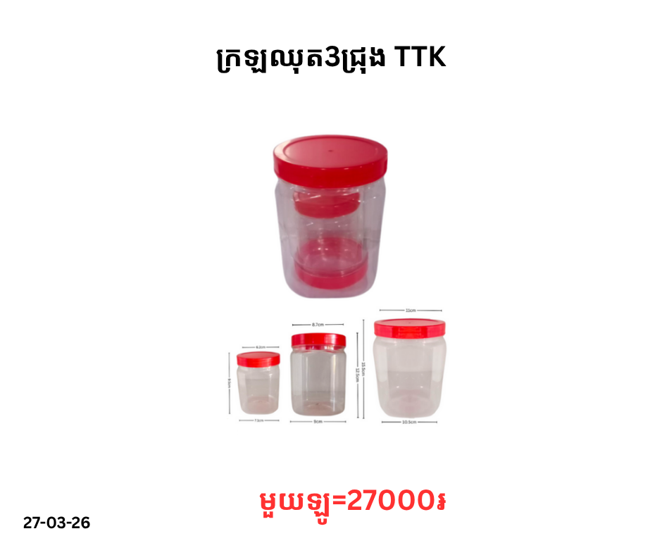ក្រឡឈុត3ជ្រុង TTK December 22, 2025 Posted in 27000, TTK, ក្រឡ, ក្រឡ TTK, ក្រឡឈុត តម្លៃ: 27000 ៛ Barcode: P0005815 | Factory: