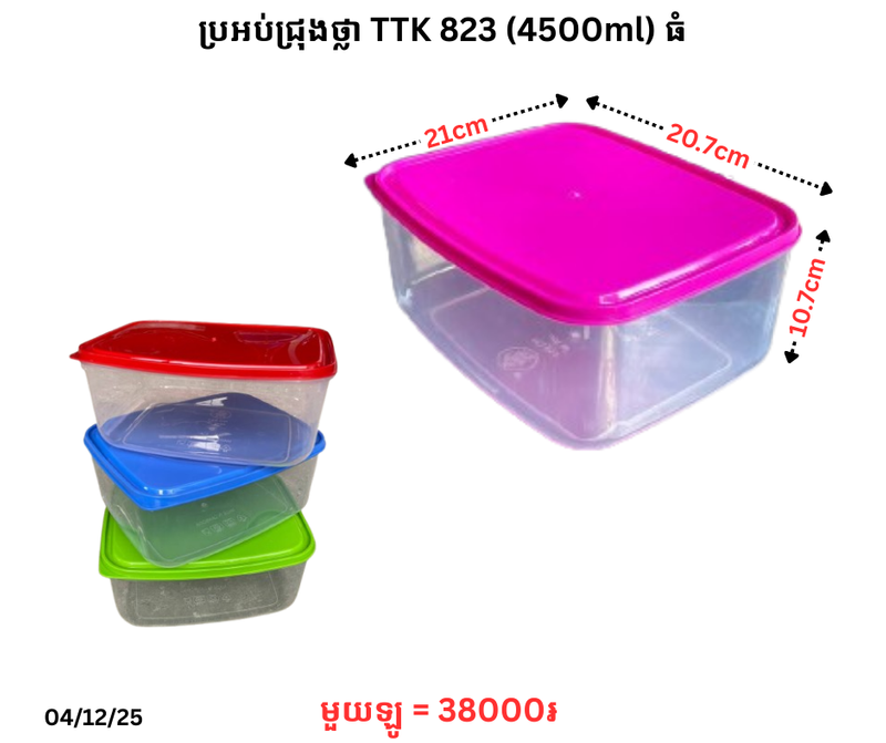 ប្រអប់ជ្រុងថ្លា TTK 823 (4500ml) ធំ December 24, 2025 Posted in 38000, TTK, ប្រអប់, ប្រអប់ជ្រុង, ប្រអប់ជ្រុងថ្លា, ប្រអប់ជ្រុងថ្លា TTK
