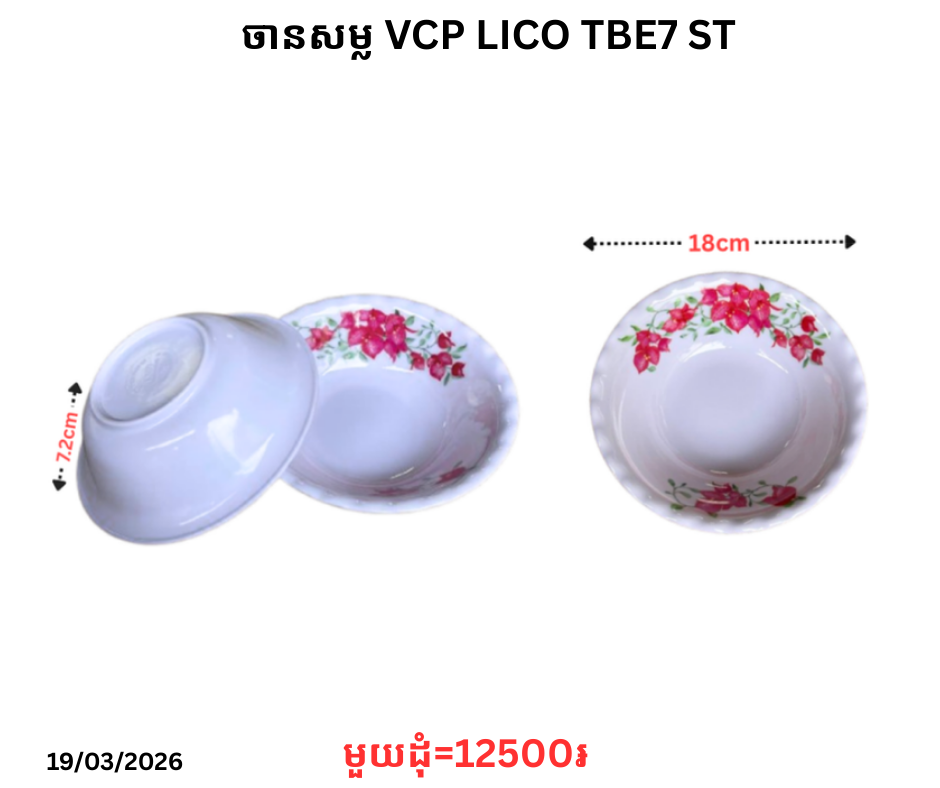 ចានសម្ល VCP LICO TBE7 ST December 6, 2025 Posted in 12500, ST, TL, ចាន, ចានប៉ក់ស៊ីឡែន, ចានសម្ល, ចានសម្ល TL តម្លៃ: 12500 ៛Barcode: P0008464 | Factory: Factory Code : TBE7