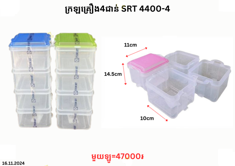 ក្រឡគ្រឿង4ជាន់ SRT 4400-4 January 11, 2026 Posted in 47000, SRT, ក្រឡ, ក្រឡគ្រឿង, ក្រឡគ្រឿង4ជាន់, ក្រឡថ្លា, ដាក់គ្រឿង
