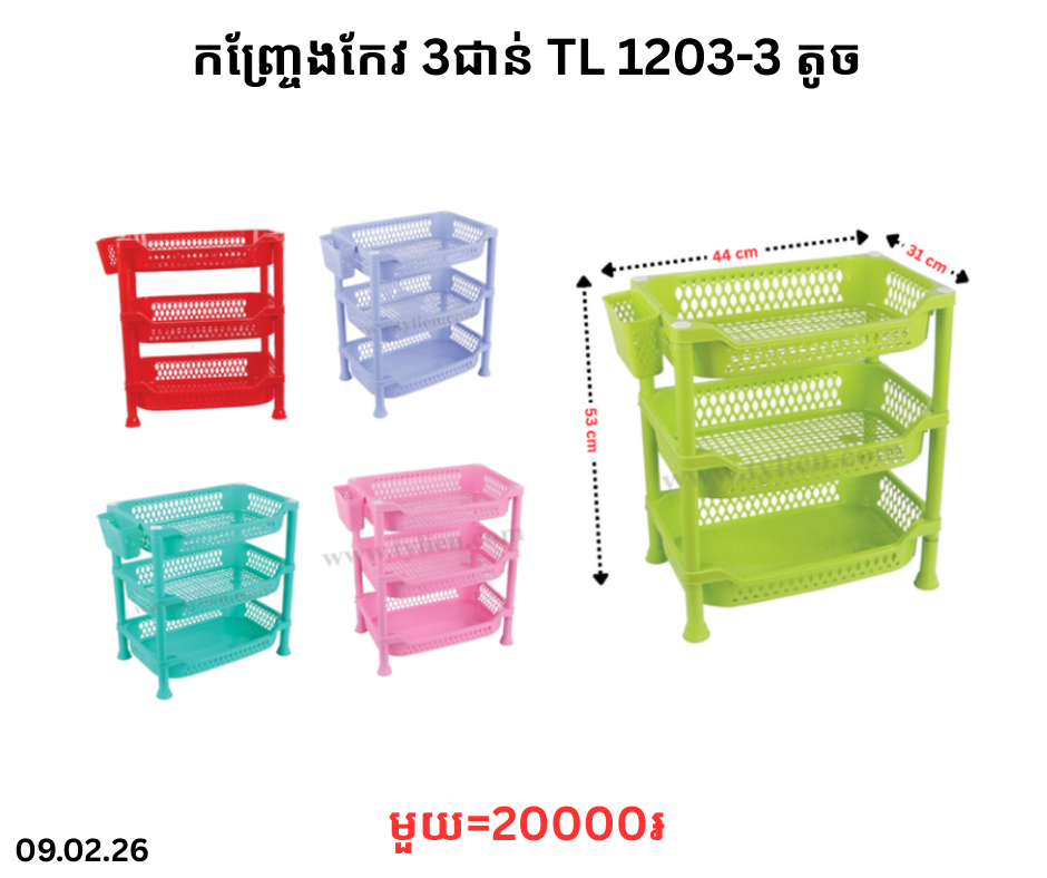 កញ្ច្រែងកែវ 3ជាន់ TL 1203-3 តូច December 24, 2025 Posted in TL, កញ្ច្រែងកែវ, កញ្ច្រែងកែវ TL តម្លៃ: 20000 ៛Barcode: 8936082381671 | Factory: 1203-3