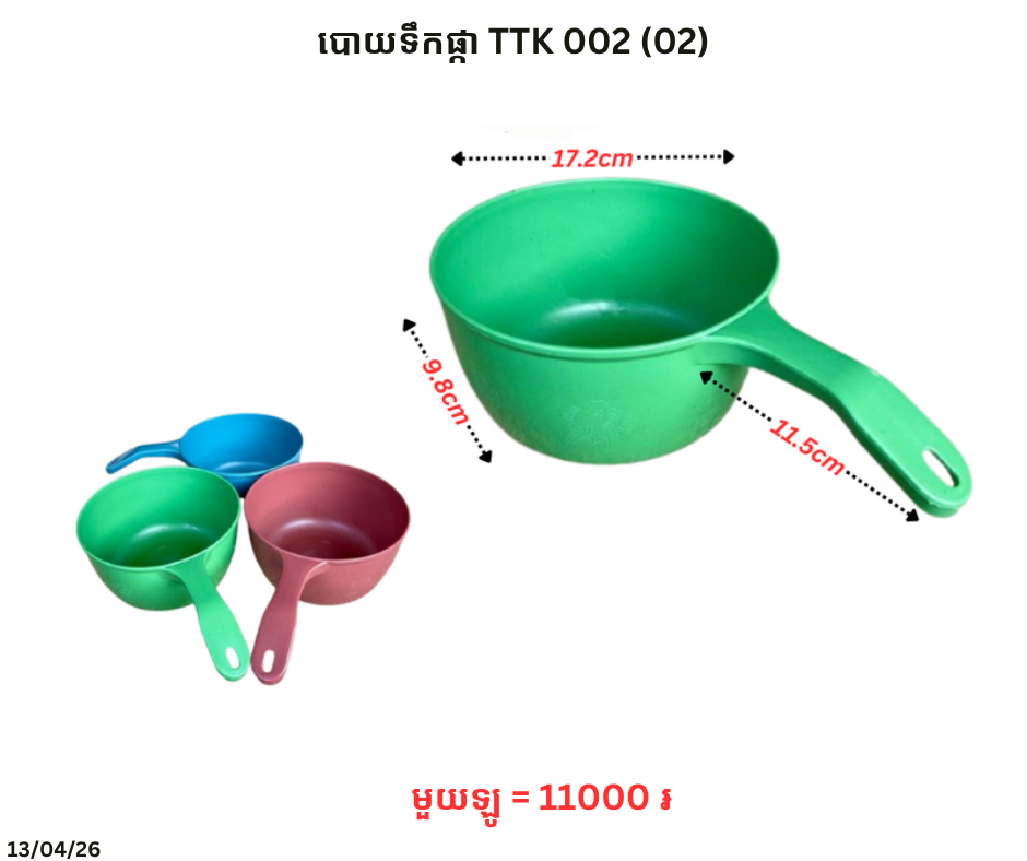 បោយទឹកផ្កា TTK 002 (02) December 23, 2025 Posted in 11000, TTK, បោយទឹក, បោយទឹក TTK, បោយទឹកផ្កា តម្លៃ: 11000 ៛ Barcode: P0006953 | Factory: 📦លេខកូដសម្គាល់ទំនិញ 🆔 Product ID: 4154537 🔣 Barcode / Code: P0006953 📊 ស្ថានភាពស្តុក៖ ជិតអស់ស្តុក