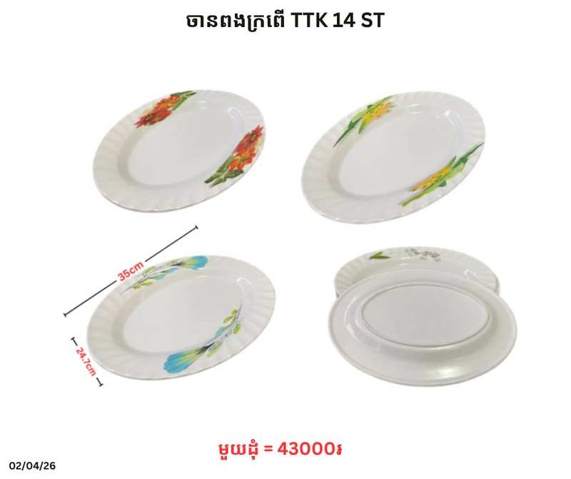 ចានពងក្រពើ TTK 14 ST December 2, 2025 Posted in 43000, ST, TTK, ចាន, ចានពងក្រពើ, ចានពងក្រពើ TTK តម្លៃ: 43000 ៛ Barcode: P0007317 | Factory: