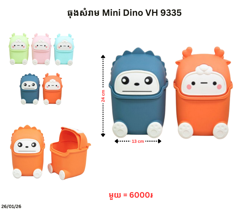 ធុងសំរាម Mini Dino VH 9335 January 26, 2026 Posted in 6000, VH, ទំនិញថ្មី, ធុងសំរាម Barcode : 8935124593355
