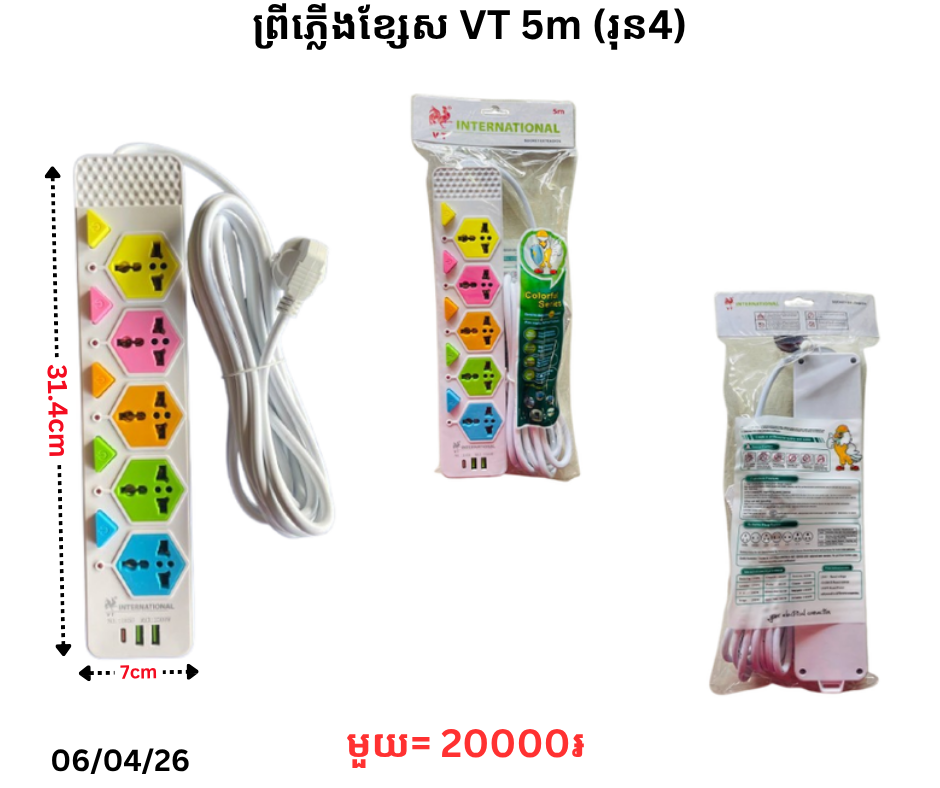 ព្រីភ្លើងខ្សែស VT 5m (រុន5) February 25, 2026 Posted in 20000, ព្រីភ្លើង, ព្រីភ្លើងខ្សែស, ព្រីភ្លើងខ្សែស VT តម្លៃ: 20000 ៛ Barcode: P0009042 | Factory: