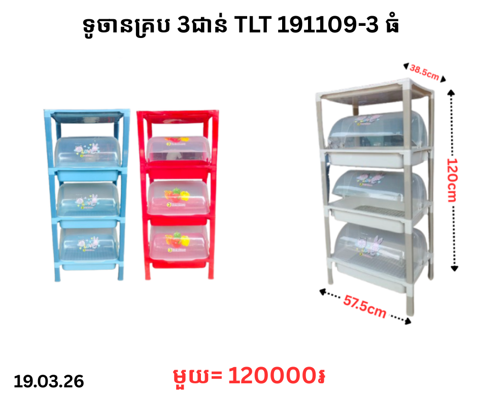 ទូចានគ្រប 3ជាន់ TLT 191109-3 ធំ March 25, 2026 Posted in TLT, ទូចានគ្រប, ទូចានគ្រប TLT តម្លៃ: 120000 ៛ Barcode: P0008223 | Factory: 191109-3