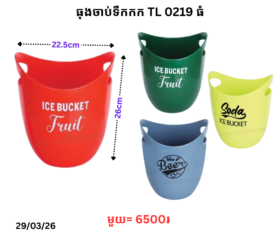 ធុងចាប់ទឹកកក TL 0219 ធំ April 1, 2026 Posted in 6500, TL, ធុងចាប់ទឹកកក, ធុងចាប់ទឹកកក TL តម្លៃ: 6500 ៛ Barcode: 8936082382272 | Factory: