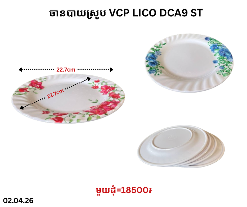 ចានបាយស្រូប VCP LICO DCA9 ST April 2, 2026 Posted in 18500, ចានបាយ, ចានបាយ TL, ចានបាយស្រូប តម្លៃ: 18500 ៛ Barcode: P0009151 | Factory: A9
