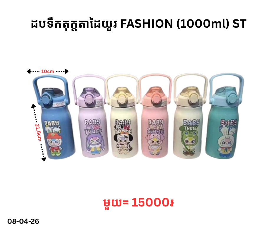 ដបទឹកតុក្តតាដៃយួរ FASHION (1000ml) ST April 8, 2026 Posted in 15000, ST, ដបទឹក, ដបទឹកតុក្តតា, ដបទឹកតុក្តតាដៃយួរ, ដបទឹកតុក្តតាដៃយួរ FASHION, ដបទឹកតុក្តតាដៃយួរ FASHION (1000ml) តម្លៃ: 15000 ៛ Barcode: P0009206 | Factory: