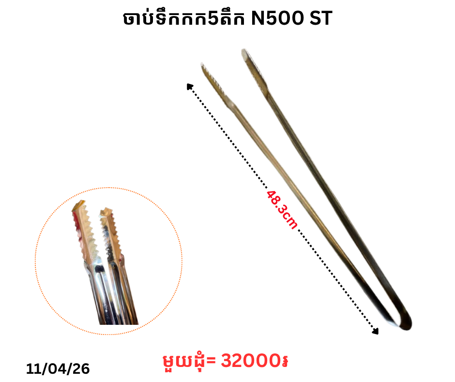 ចាប់ទឹកកក5តឹក N500 ST April 11, 2026 Posted in 32000, ចាប់ទឹកកក តម្លៃ: 32000 ៛ Barcode: P0009148 | Factory:
