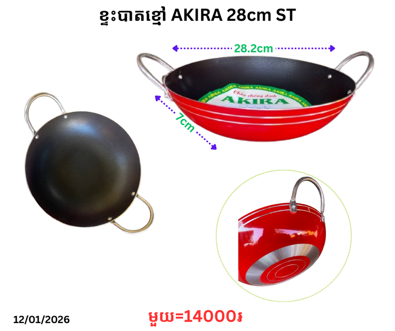 ខ្ទះបាតខ្មៅ AKIRA 28cm ST