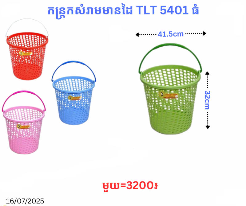 កន្ត្រកសំរាមមានដៃ TLT 5401 ធំ November 17, 2025 Posted in 3200, TLT, កន្ត្រកសំរាម, កន្ត្រកសំរាមមានដៃTLT តម្លៃ: 3200 ៛ Barcode: P0008067 | Factory: