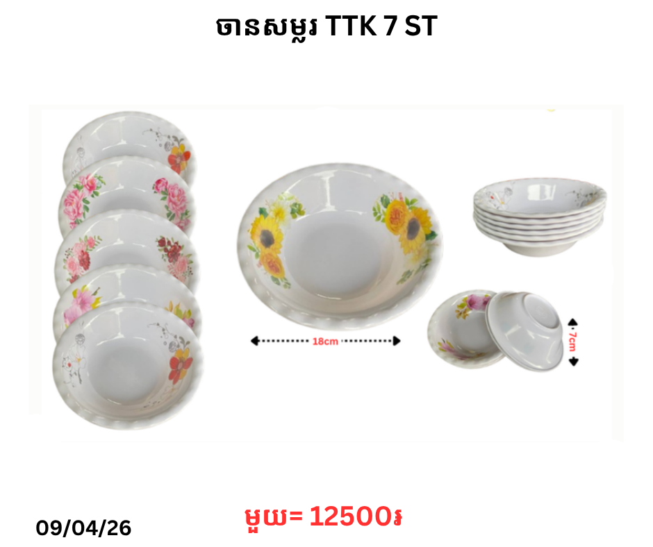 ចានសម្លរ TTK 7 ST December 6, 2025 Posted in 12500, ST, TTK, ចាន, ចានប៉ក់ស៊ីឡែន, ចានសម្ល, ចានសម្ល TTK តម្លៃ: 12500 ៛ Barcode: P0007310 | Factory: