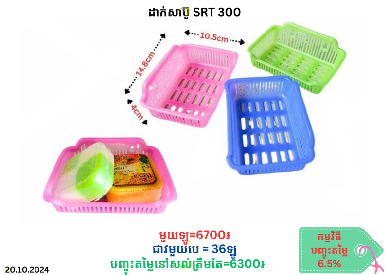ដាក់សាប៊ូ SRT 300 December 20, 2025 Posted in 6300, SRT, ដាក់សាប៊ូ, ដាក់សាប៊ូ SRT តម្លៃ: 6700 ៛ បញ្ចុះតម្លៃ: 6300 ៛ (ទិញចាប់ពីចំនួន 36 ឡើងទៅ) Barcode: P0003522 | Factory: 8859411902302