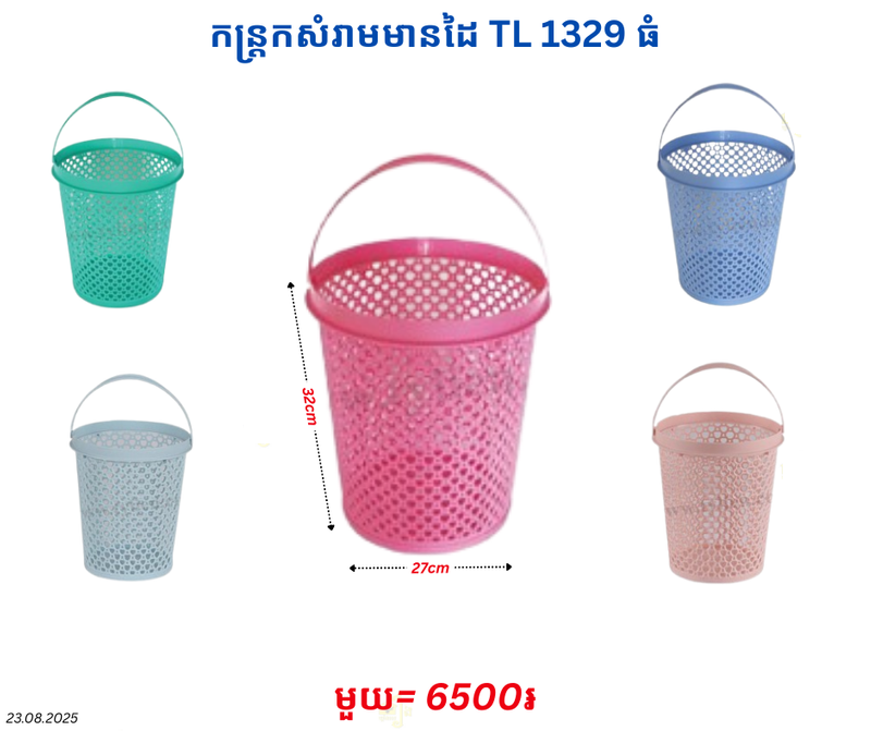 កន្ត្រកសំរាមមានដៃ TL 1329 ធំ November 17, 2025 Posted in 6500, TL, កន្ត្រកសំរាម, កន្ត្រកសំរាមមានដៃTL Factory Code : 1329