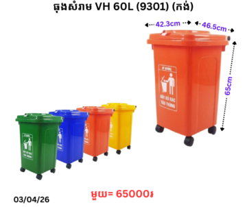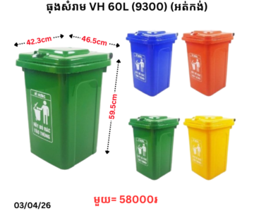 ធុងសំរាម VH 60L (9301) (កង់)